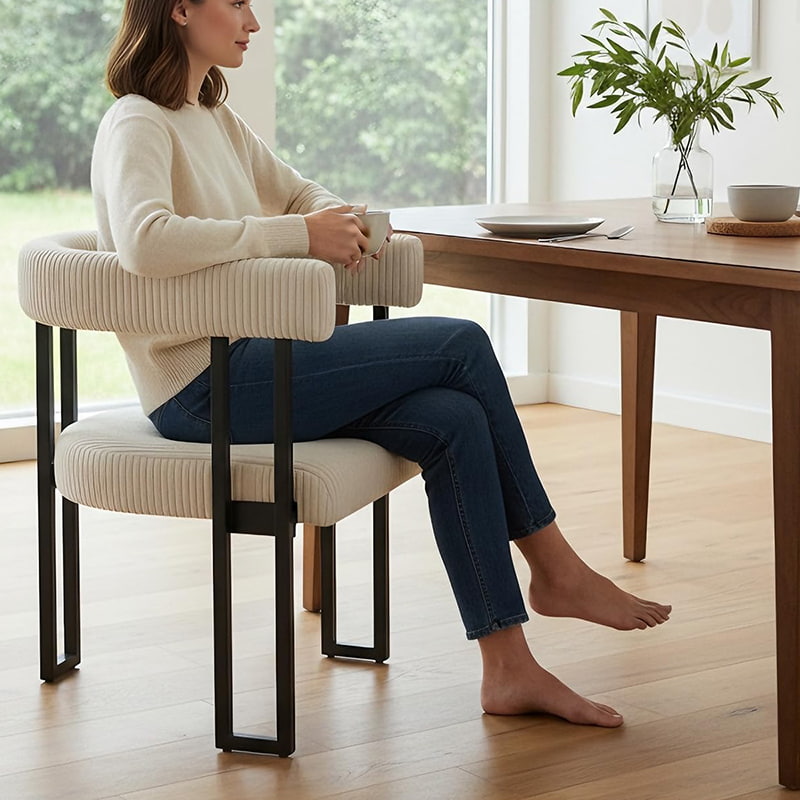 このブークレ ダイニング チェアは、安定した品質と柔軟な供給を備えた、信頼性が高く輸出対応のダイニング ルーム チェアを求める B2B バイヤー向けに設計されています。高反発フォームパッドを備えた耐久性のあるコーデュロイ生地で布張りされたこの布張りのダイニングチェアは、商業用および住宅用に一貫した快適さ、構造的安定性、および長期的なパフォーマンスを提供します。レストランのダイニングチェア、小売流通のキッチンチェア、ホームファニシングブランドのアクセントチェアなどに適しています。
