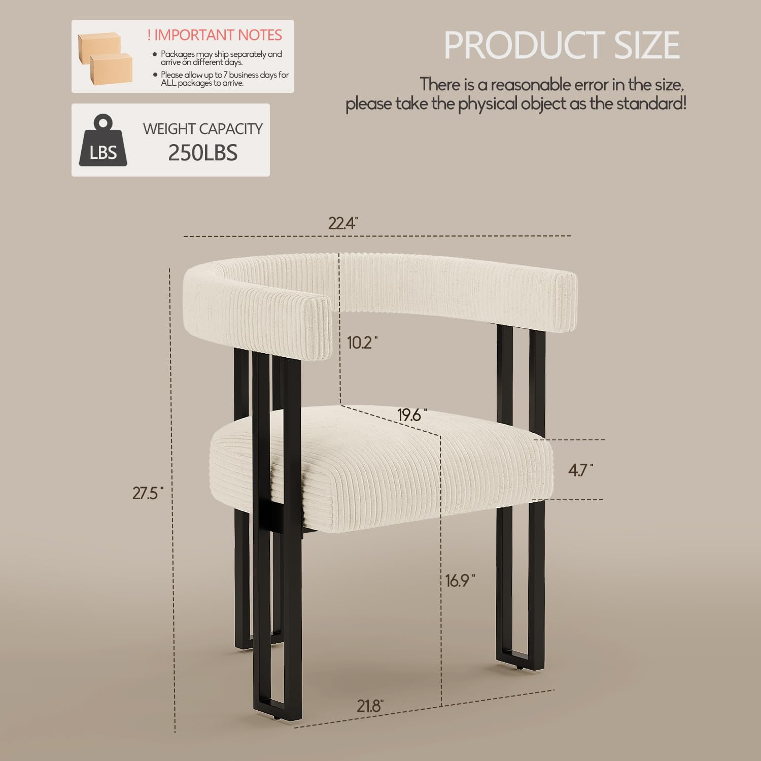 ブークレ ダイニングチェア、ホワイト コーデュロイ布張りのダイニング ルーム チェア、金属脚付き、ミッドセンチュリー モダン アクセント チェア