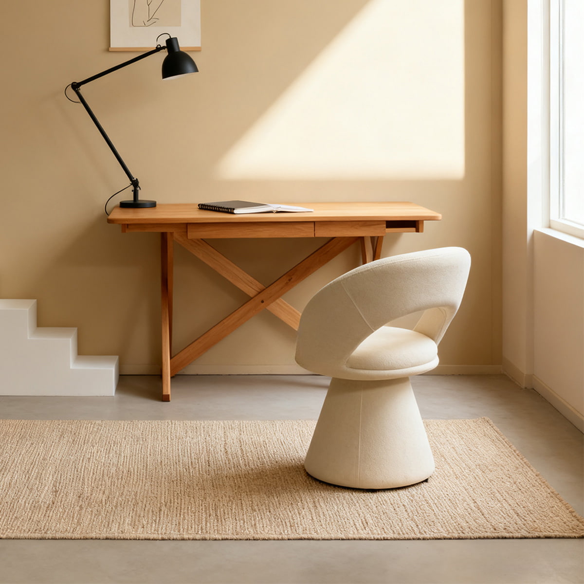 シデの木の骨組みと強化された布張りのベースで作られたこの椅子は、洗練された美しさを維持しながら、優れた安定性を実現します。居心地の良いリビングルームでも、モダンなダイニングスペースでも、スタイリッシュな化粧台コーナーでも、DUOMEI 回転チェアは普通の空間を洗練されたリラクゼーションの安息の地に変えます。