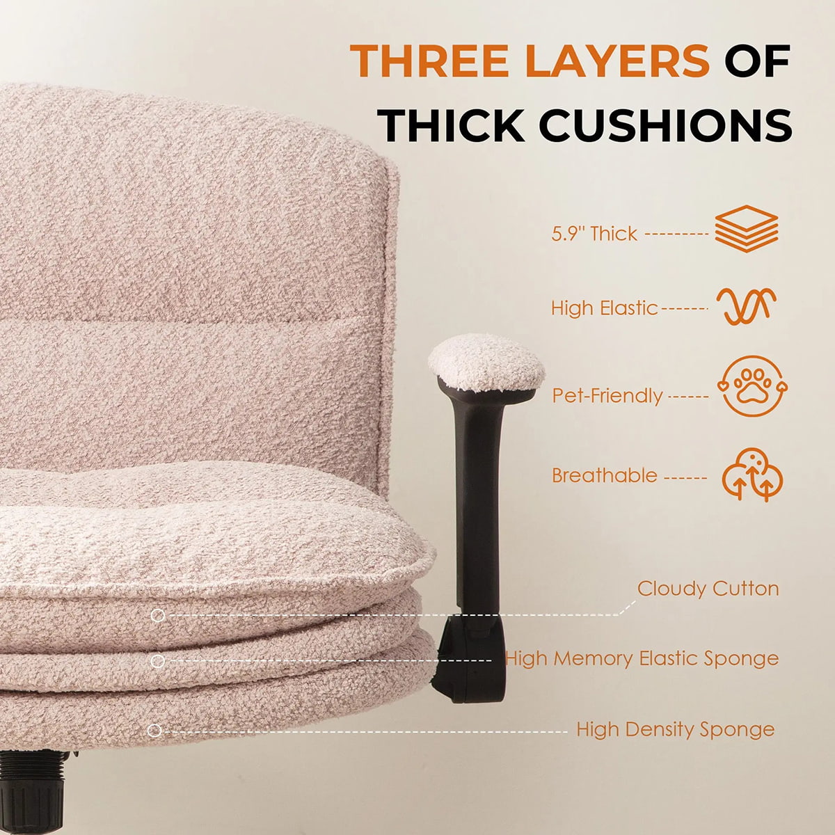 ● 5.9 インチの 3 層クラウドクッションが長時間持続する柔らかさと人間工学に基づいたサポートを提供します。