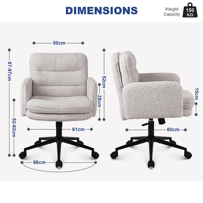このフェイク カシミア オフィス チェアは、快適さ、美しさ、信頼できる製造品質のバランスを求めるバイヤー向けに設計されています。柔らかく肌に優しいフェイクカシミア生地で張り付けられたこの椅子は、厚みのある15cmの高密度クッションを備えており、崩れることなく長期間のサポートを提供するため、長時間の仕事、勉強、化粧台での使用に最適です。人間工学に基づいたシート構造と、スムーズな 360 度回転、高さ調整、穏やかなロッキング機能を組み合わせることで、毎日の座り心地を向上させながら、ホーム オフィス、寝室、ライフスタイル志向のインテリアに適したクリーンでモダンな外観を維持します。