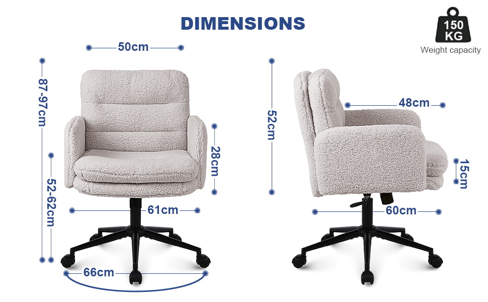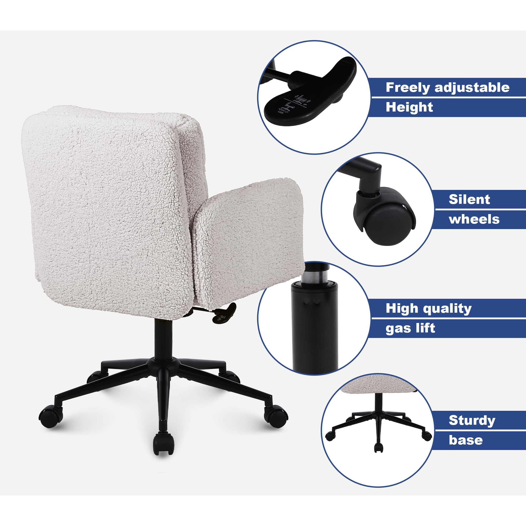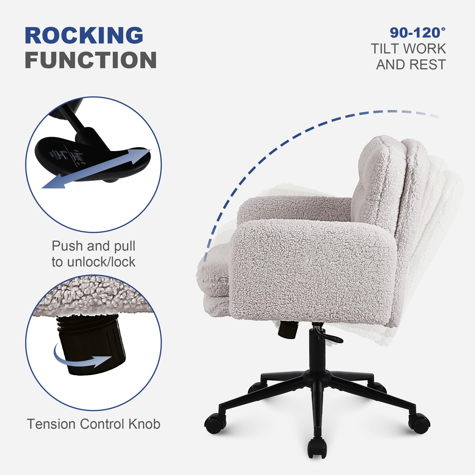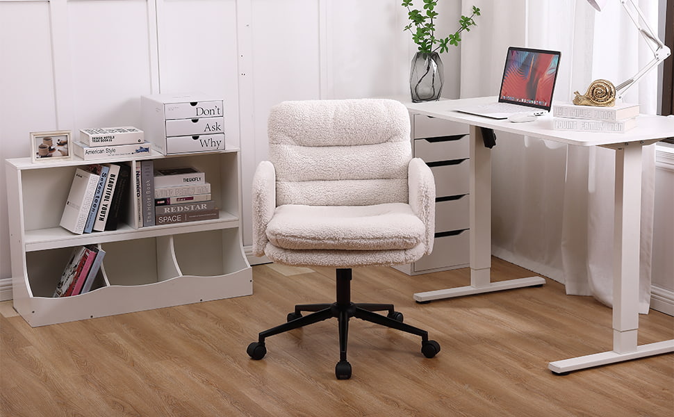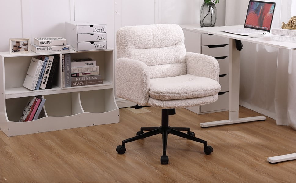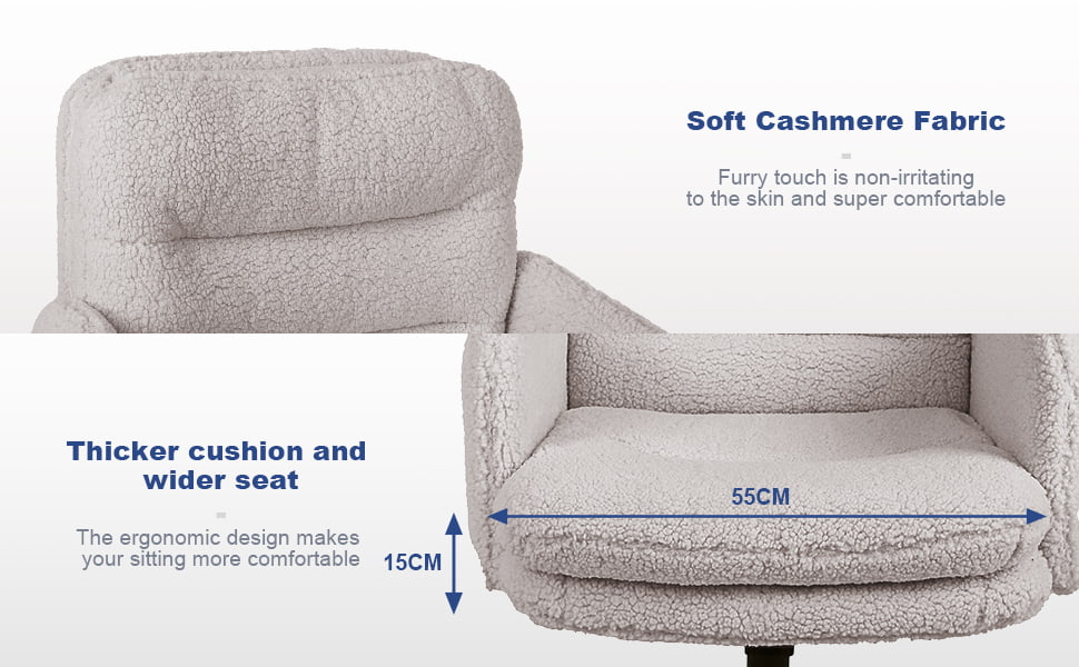 フェイクカシミヤの調節可能なオフィスチェア、回転&ロッキング機能付き – 家庭用および化粧台用の柔らかい布張りのデスクチェア