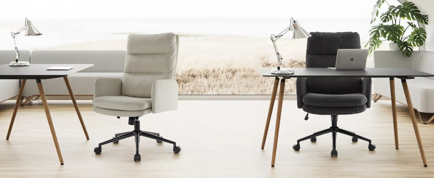 このハイバック カシミア オフィス チェアは、最高の快適さ、モダンな美しさ、人間工学に基づいたサポートを重視する購入者向けに設計されています。フィギュアコットンと高密度スポンジを使用した二層パッド入りシートを特徴とするこのチェアは、雲のような柔らかさを実現しながら、長時間座っても安定したサポートを維持します。柔らかいフェイクカシミア生地は暖かく肌に優しいタッチを提供し、ホームオフィス、寝室、化粧台、現代的なワークスペースに最適です。 360°回転ベース、SGS認定リフト、サイレントキャスター、100°~120°のロッキング機能により、生産性、リラックス、日常使用に適しています。