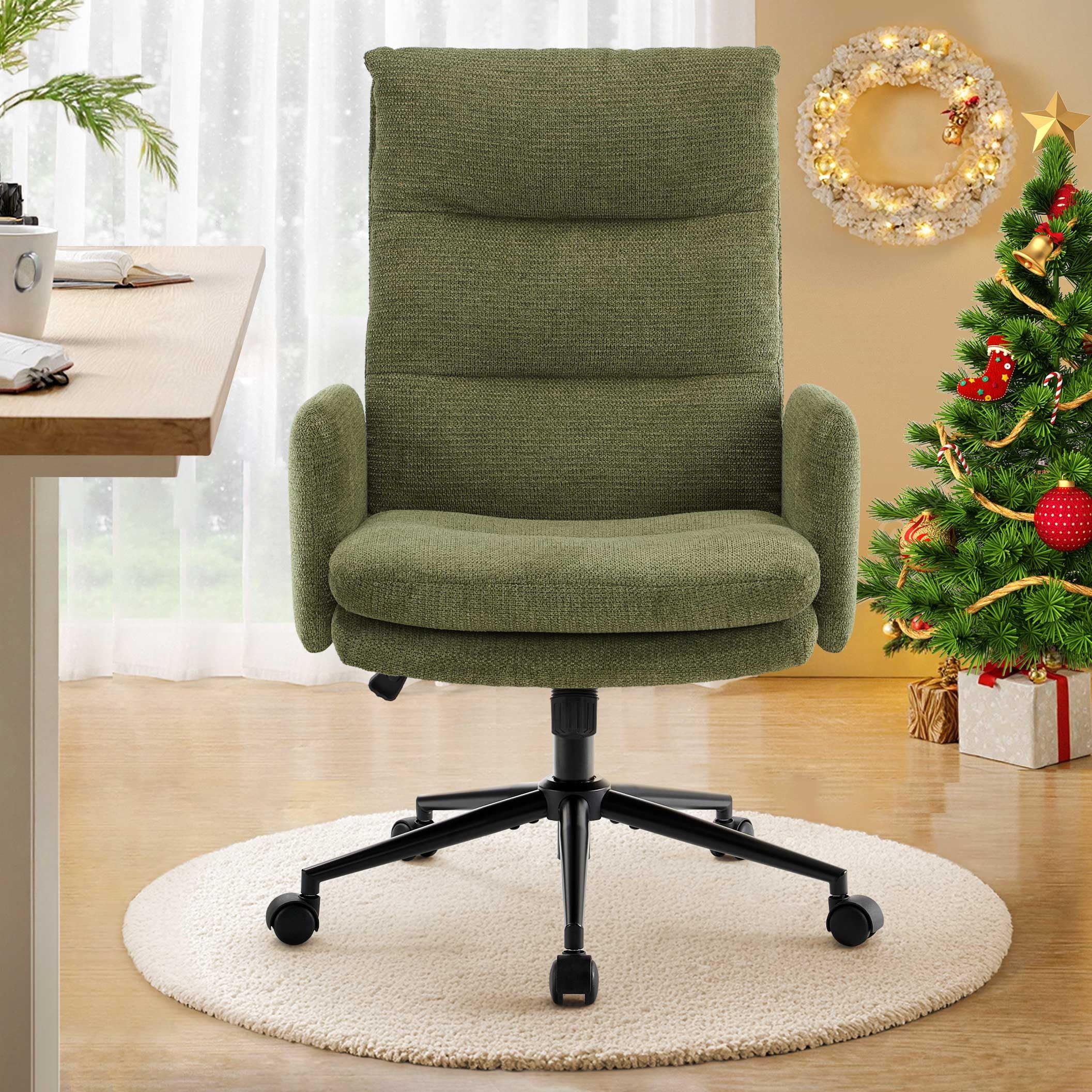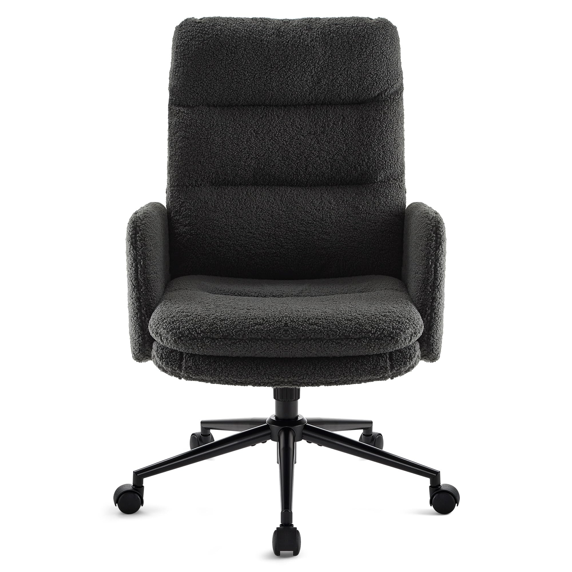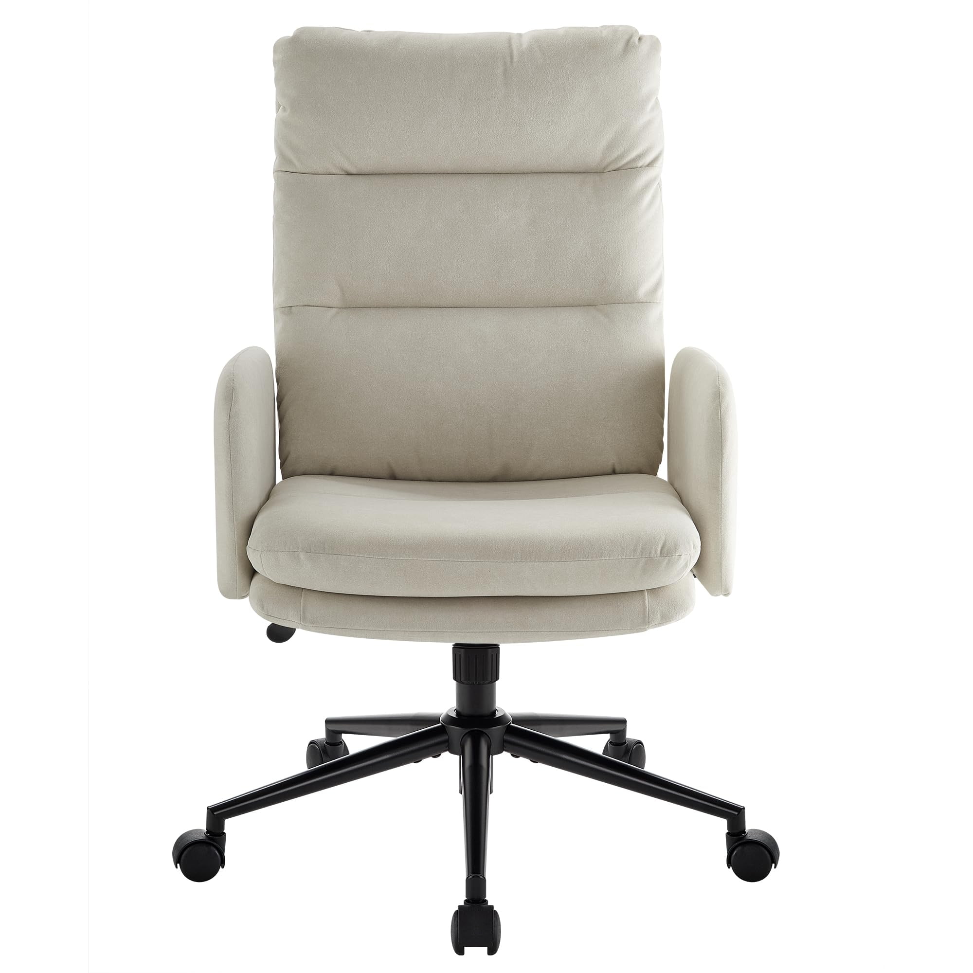 高さ調節可能なハイバックカシミヤオフィスチェア、回転ベース、ホームオフィス用の厚いダブルパッドクッション付き