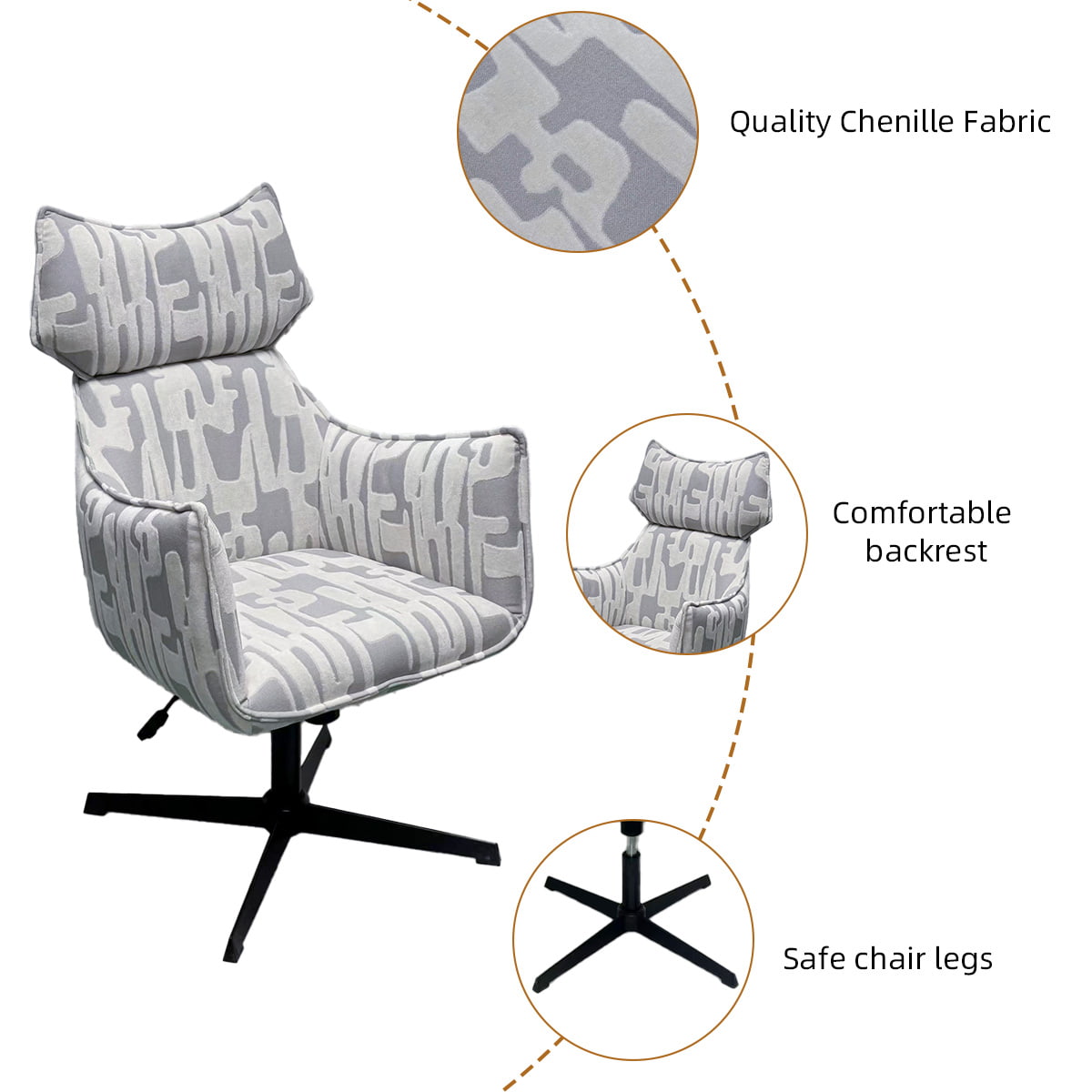 当社の調節可能な回転アームチェアは、人間工学に基づいた快適さ、耐久性のある金属ベース、高級シェニール織の張り地を組み合わせたモダンなインテリア向けに設計されています。リビングルーム、オフィス、ホテル、ラウンジに最適で、実用性と洗練された美しさの両方を提供します。