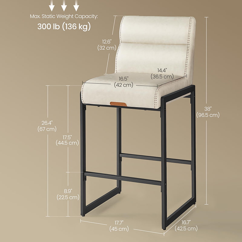 カウンターハイト バースツール 背もたれ付き、クリームホワイト合成皮革、ミッドセンチュリーモダンメタルフレーム