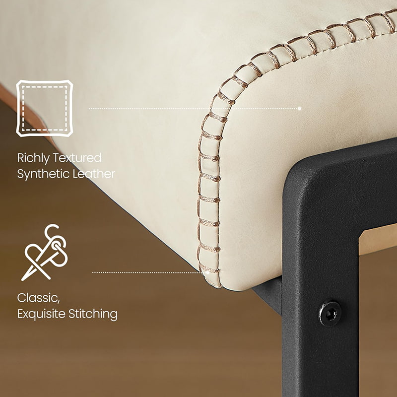 滑らかな合成皮革の表面には繊細なステッチが施されており、お手入れが簡単でありながら、細工された外観を実現しており、忙しい家庭や小規模な商業施設に最適です。緩やかに湾曲したシートエッジが脚への圧力を軽減し、統合されたバックポケットにより、携帯電話、タブレット、または小さな必需品を収納するのに便利です。調節可能な脚が隠された頑丈な金属フレームで支えられたこのバースツールは、さまざまな床面での安定性を確保し、モダンなキッチン、ダイニング スペース、またはカジュアルな娯楽エリアに簡単に適応します。
