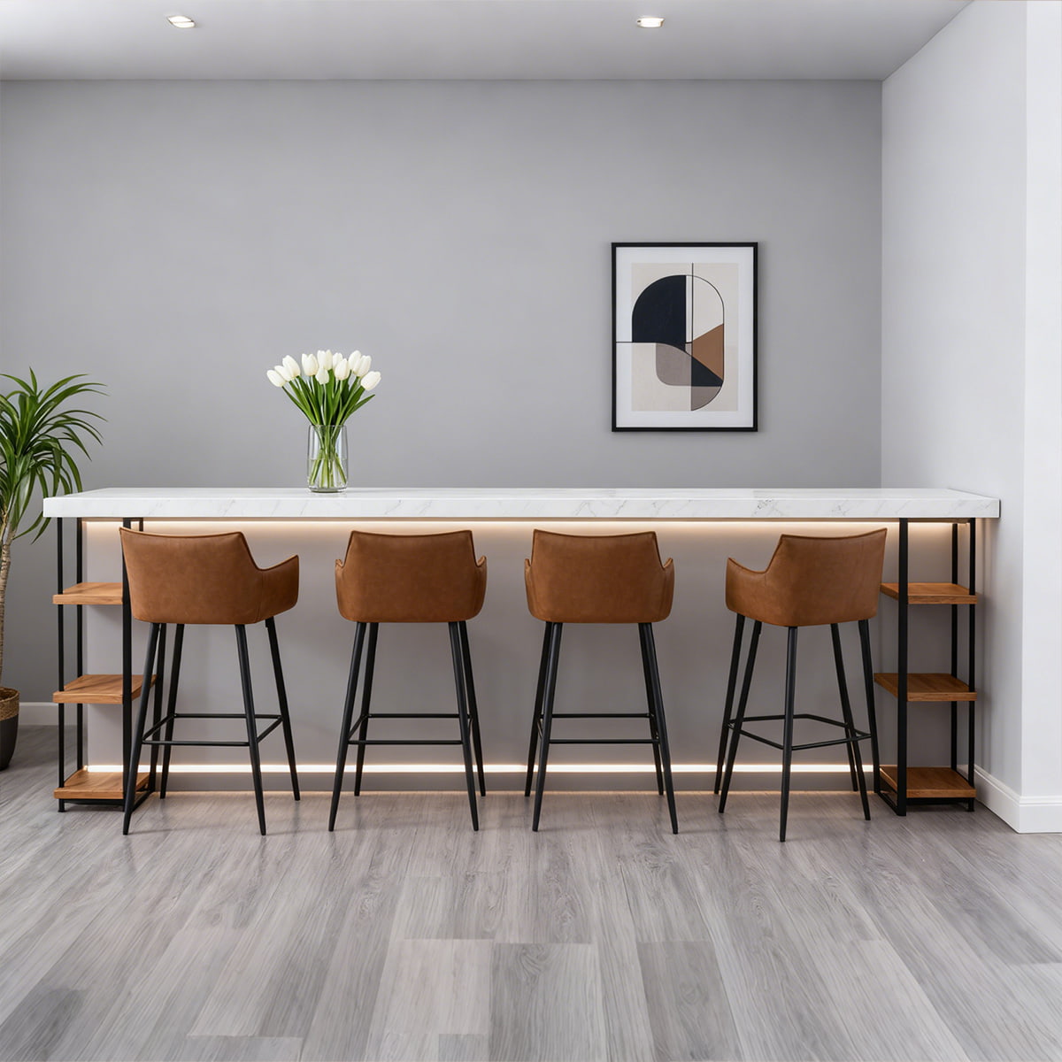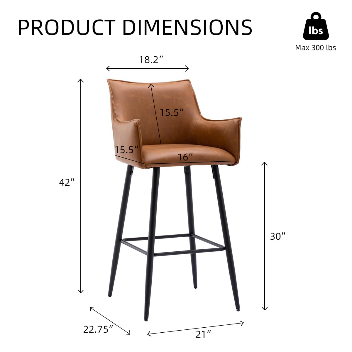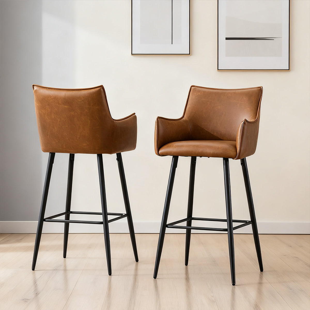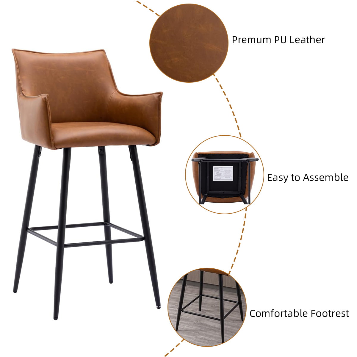 ● モダンな美学 — 温かみのあるブラウンの合成皮革とマットブラックの脚を備えた洗練されたシルエットが、洗練されたインダストリアルな魅力を加えます。