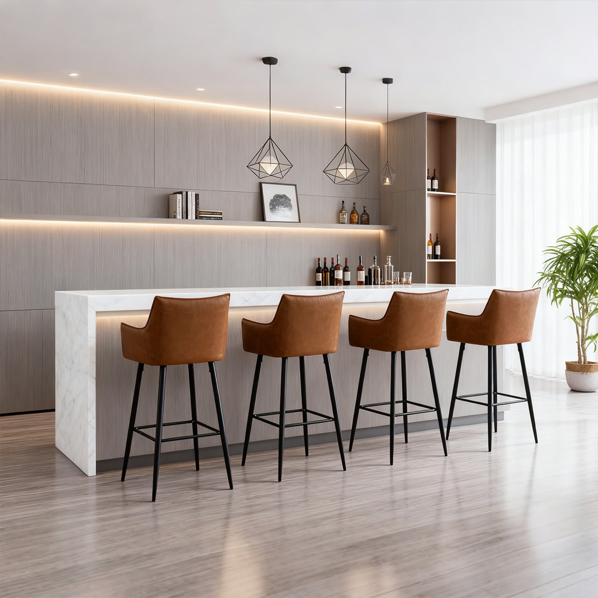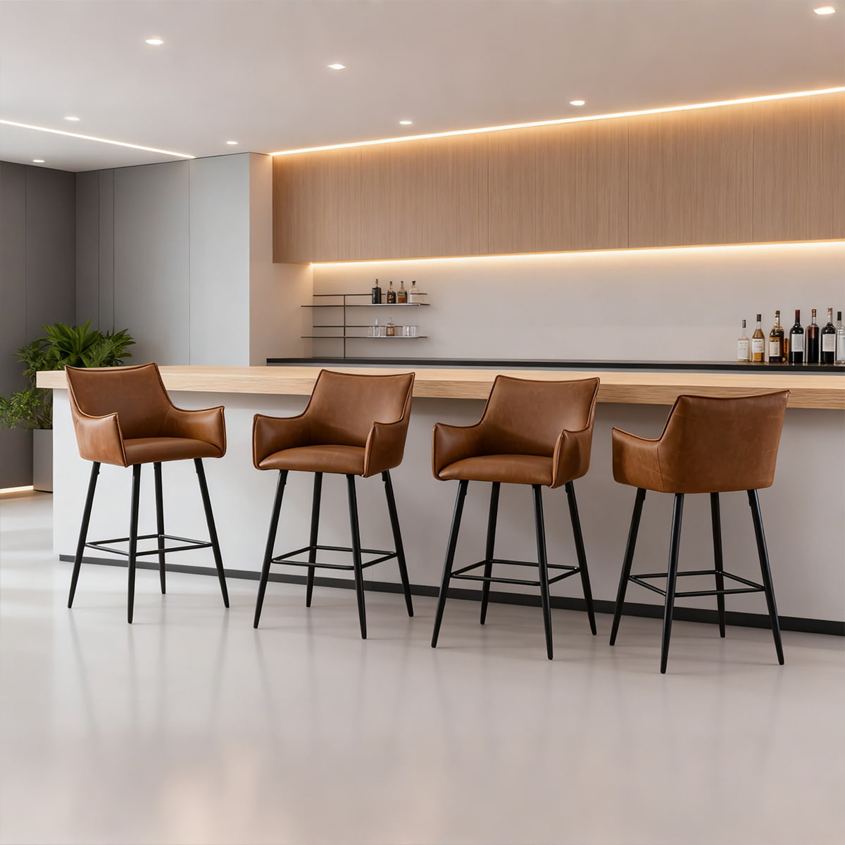 そのミニマルなシルエットとマットブラックの脚は、アイランドキッチンから高級バーに至るまで、住宅と商業の両方のインテリアを引き立てます。頑丈な金属ベースと滑り止めパッドを備えた各スツールは、耐荷重 300 ポンドで安全な座り心地を提供します。モダンな住宅、ブティックレストラン、バーカウンターなど、このスツールはあらゆる環境に時代を超越した洗練さをもたらします。